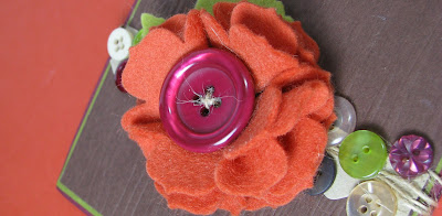 The flower is made withTerracotta Tile and Ripe Avocado felt die cut with the Beautiful Blooms 2 #3 die and Delightful Dahlia Die for the leaves.